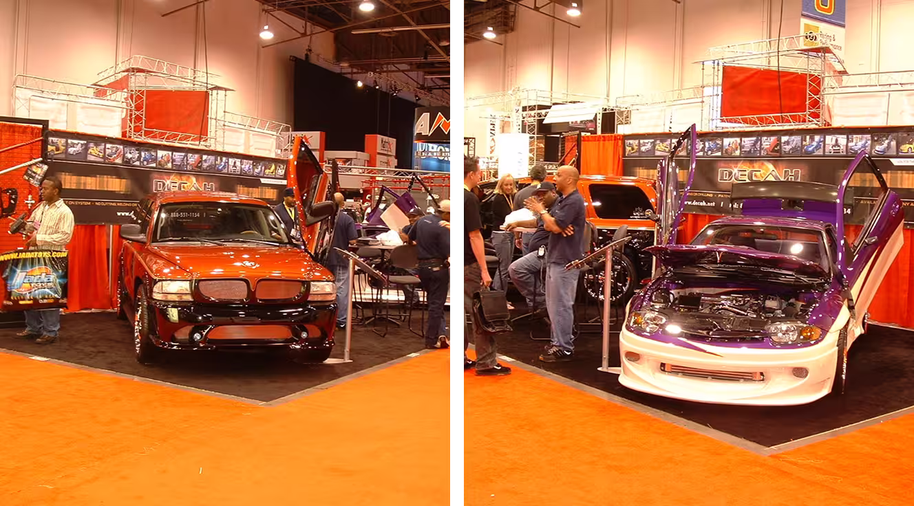 2004 – Our first cars in SEMA: a 2004 Durango and 2003 Cavalier “Cavzilla” in the DECAH Lambo Door booth.