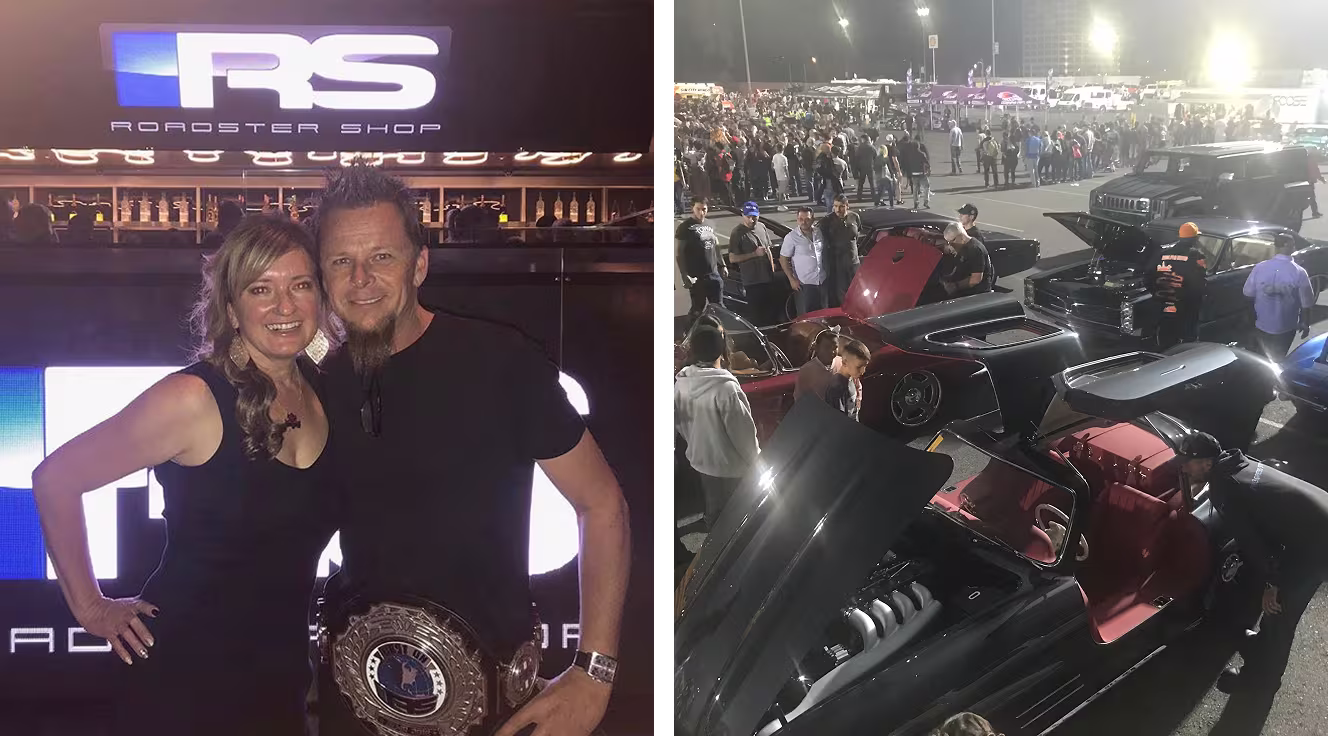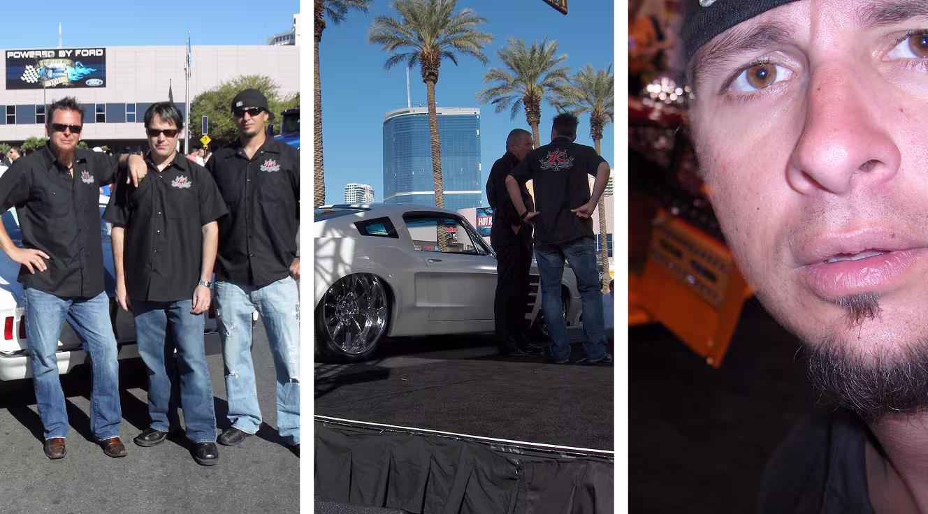 2002 – A story that still gets laughs today: Kevin was pulled over on his way to Vegas, an old ticket landed him in jail, and when Dave showed up to bail him out, he got booked too (over a tint-ticket warrant). Luckily, Charity saved the day and got them to SEMA. Lesson learned: always pay your tickets!