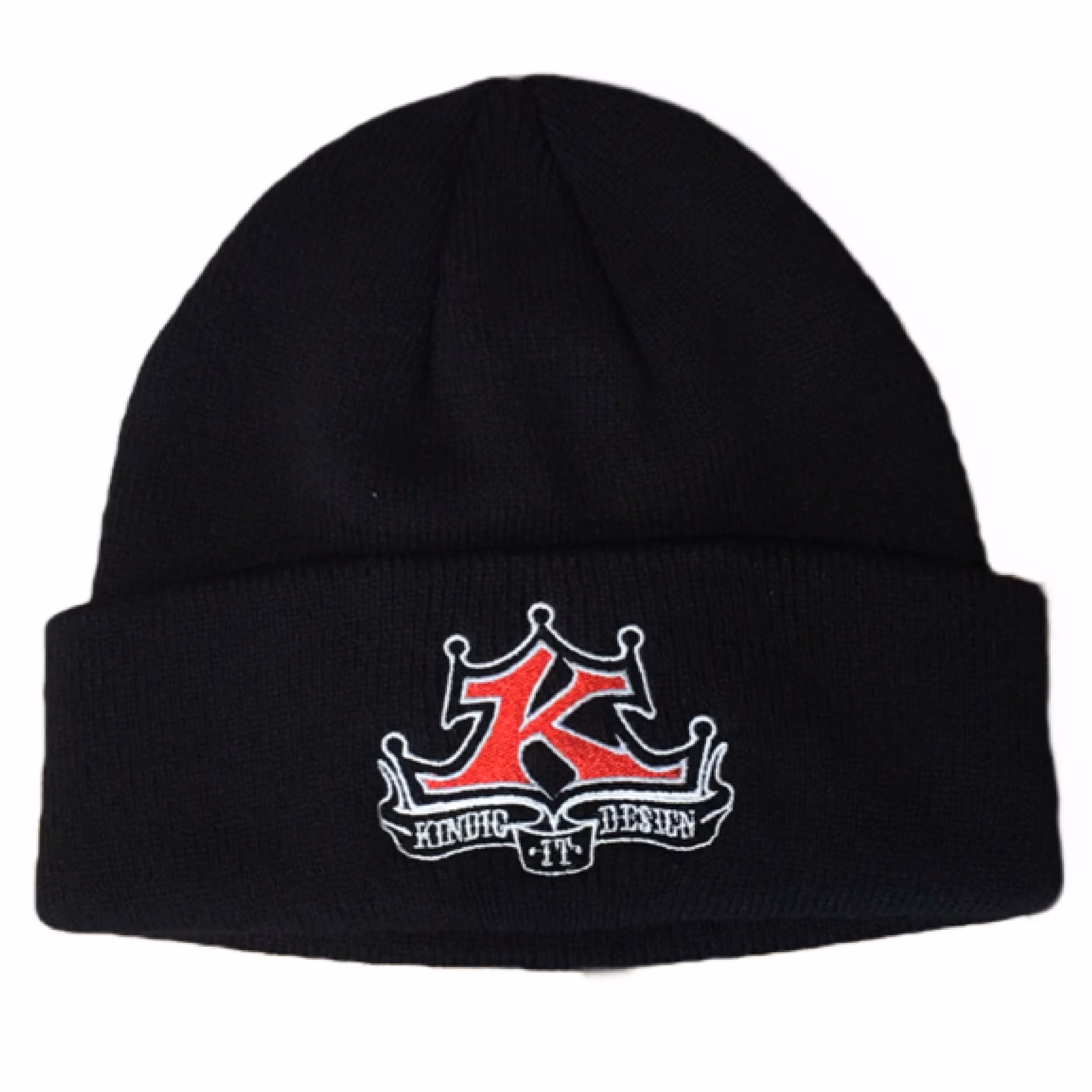 For those that don't like feeling the cool wind blowing through your hair with the top down on your Hotrod, we got you covered! Literally! This Black in color folded beanie is locally embroidered with a red and white Kindig-it logo.Â