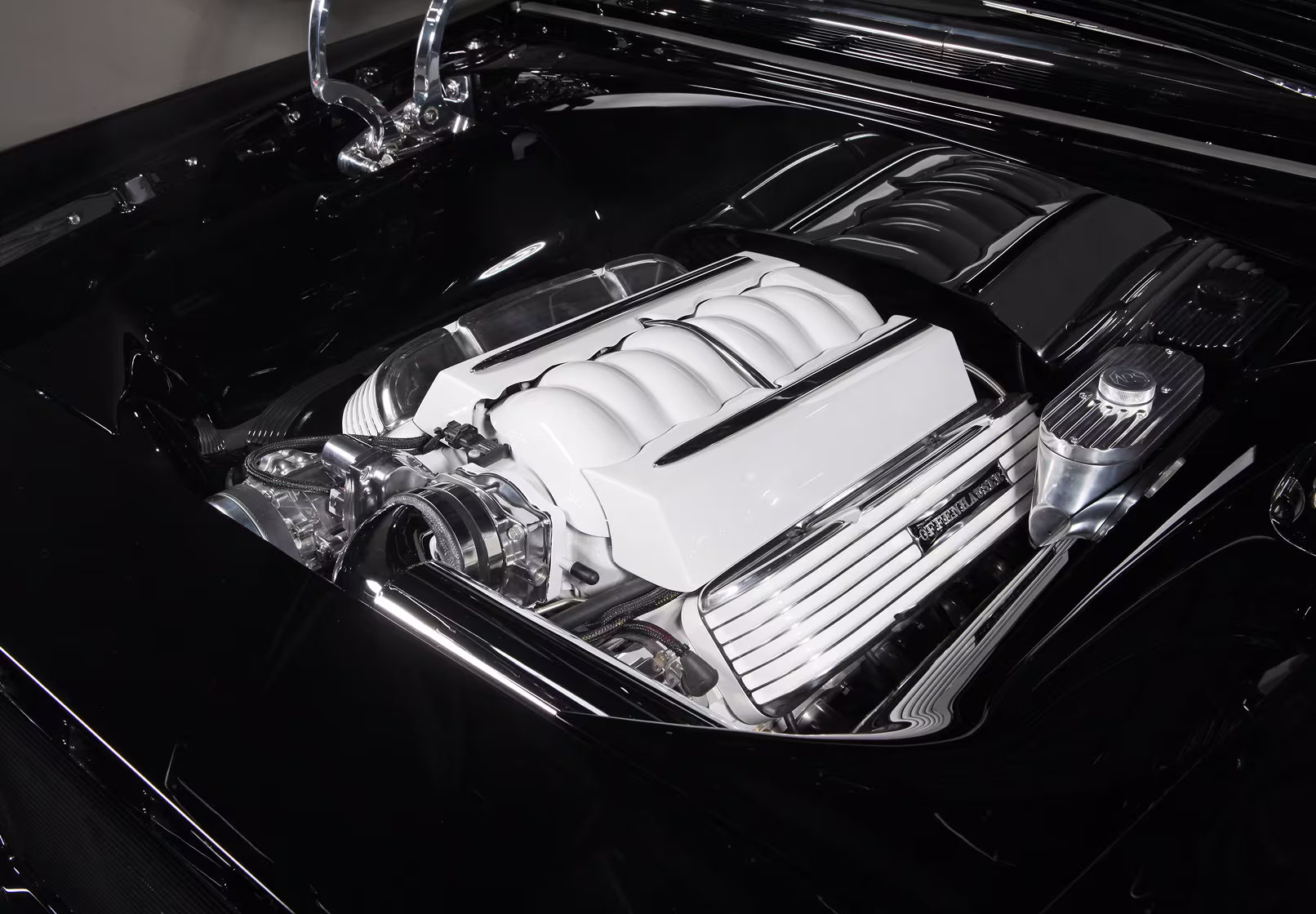 This beautiful 1956 Chevy Bel Air, nicknamed “Tuxedo,” is a timeless example of classic styling paired with modern craftsmanship. Finished in a striking black and white two-tone, this Bel Air embodies elegance and sophistication, with smooth body lines, refined chrome accents, and a stance that perfectly complements its iconic silhouette. Every inch of the exterior has been meticulously finished to reflect the level of quality and detail that Kindig-it Design is known for.