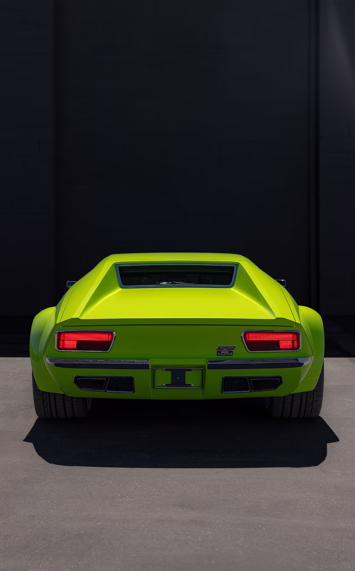 4” Stretch, Hour-glassed quarters, fender flares, Full custom front end openings trimmed out with Chrome, Kindig-it Design smooth Bar door handles, 3D-printed grills, and Custom machined trim throughout. Custom-skinned Hood. All trim is custom-built and chrome by Ogden Chrome. We deleted the pop-up headlights and created a new shape and style from scratch.