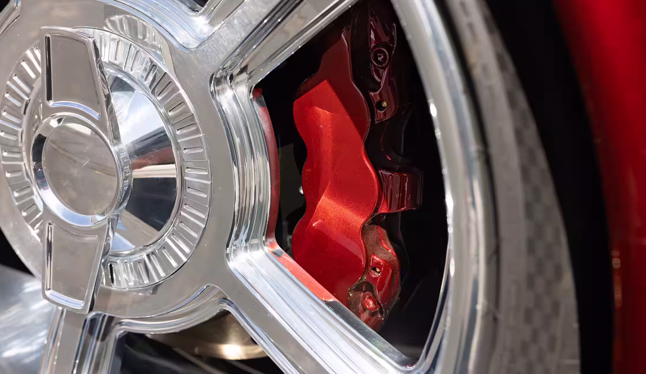 Wheels are “CF1 Ralley” 3-piece billet designed by Dave Kindig and built by Forgeline with a polished finish. Front 21x9 and Rear 22x12. Tires are Michelin Pilot 4S Front 255/30/21 and Rear 335/25/22.