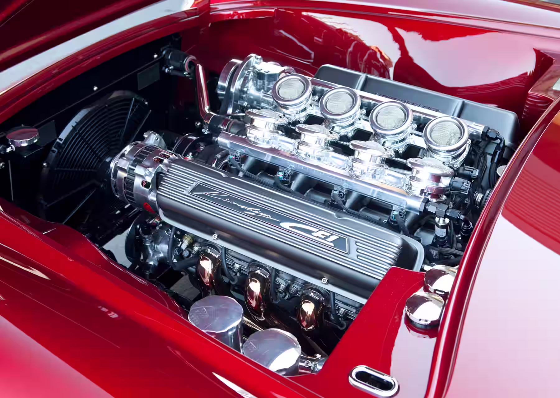 Lingenfelter Eliminator LS7 with LS3 Heads, made specifically for the CF1, Borla 8-stack injection, Billet Specialties Tru Trac Serpentine Accessory Drive, Holley Dominator EFI, Stainless Ultimate Headers. Backed by a GM Performance 6-Speed Manual Transmission.