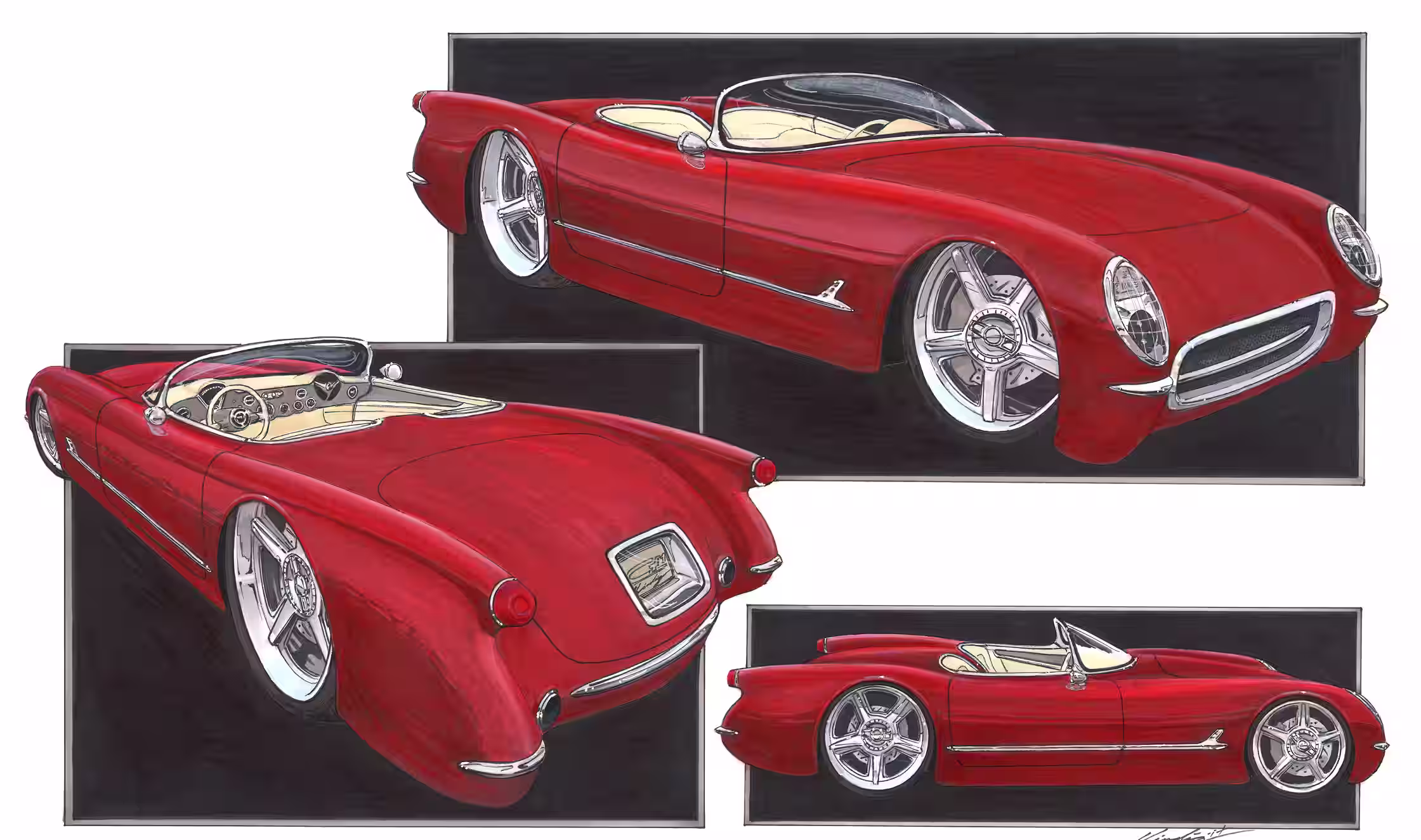 Body is full Carbon Fiber produced by Doug’s Performance Corvettes, tubbed, 3 inch to zero wedge sectioning. Stretched Door 4.5”, Stock Wheel Base, Reshaped wheel arches to hug the wheels, 2.5” Chopped & Laid Back Windshield frame, Shaved Cowl Vent, Shaved Tonneau Cover.