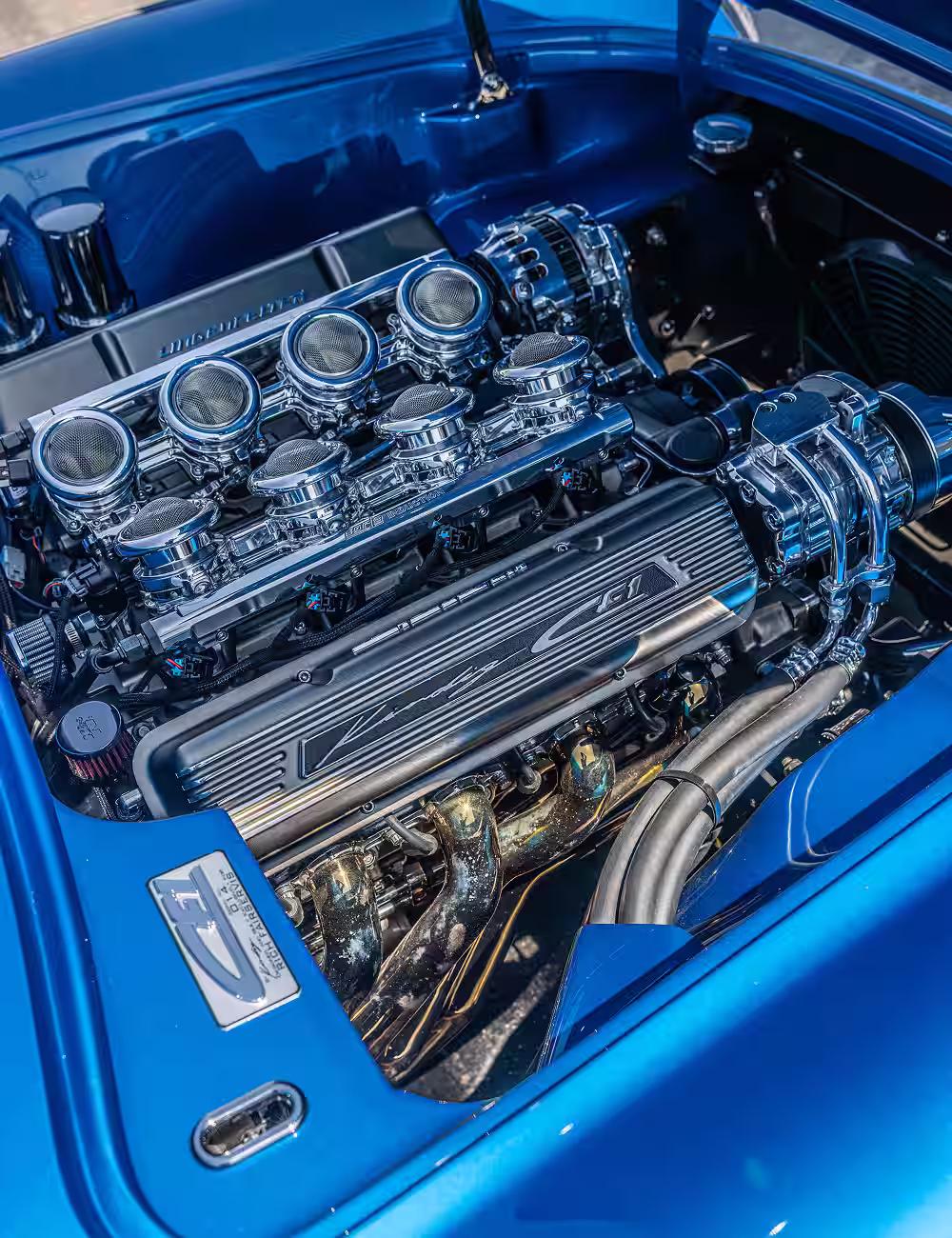 Body is full Carbon Fiber produced by Doug’s Performance Corvettes, tubbed, 3 inch to zero wedge sectioning. Stretched Door 4.5”, Stock Wheel Base, Reshaped wheel arches to hug the wheels, 2.5” Chopped & Laid Back Windshield frame, Shaved Cowl Vent, Shaved Tonneau Cover.
